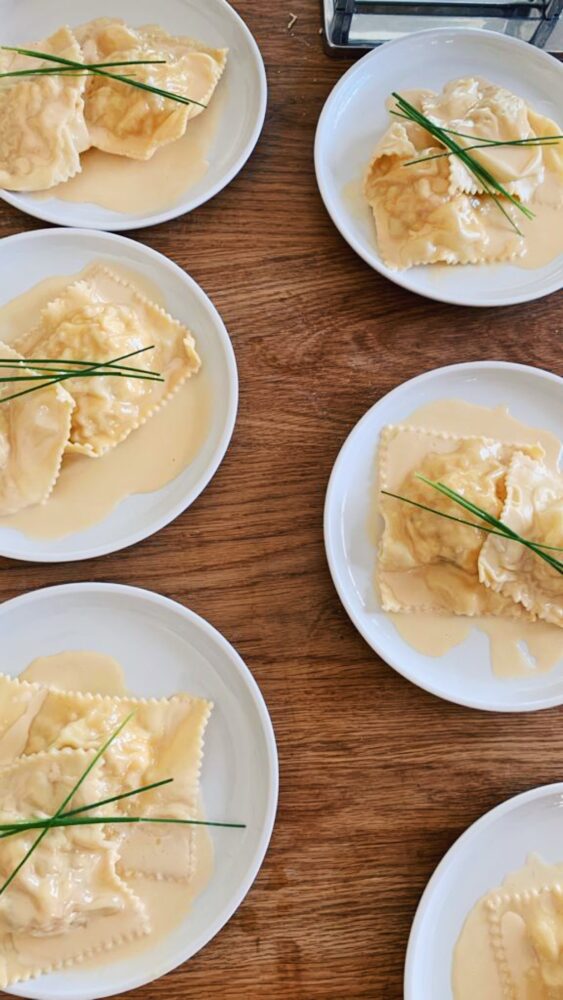 This Italian Christmas Lunch with include the following menu – ‘Peach & Prosciutto Antipasto’ to start, ‘Lobster & Prawn Ravioli’ for our main, and to end ‘Zuppa Inglese (Italian Trifle)’!