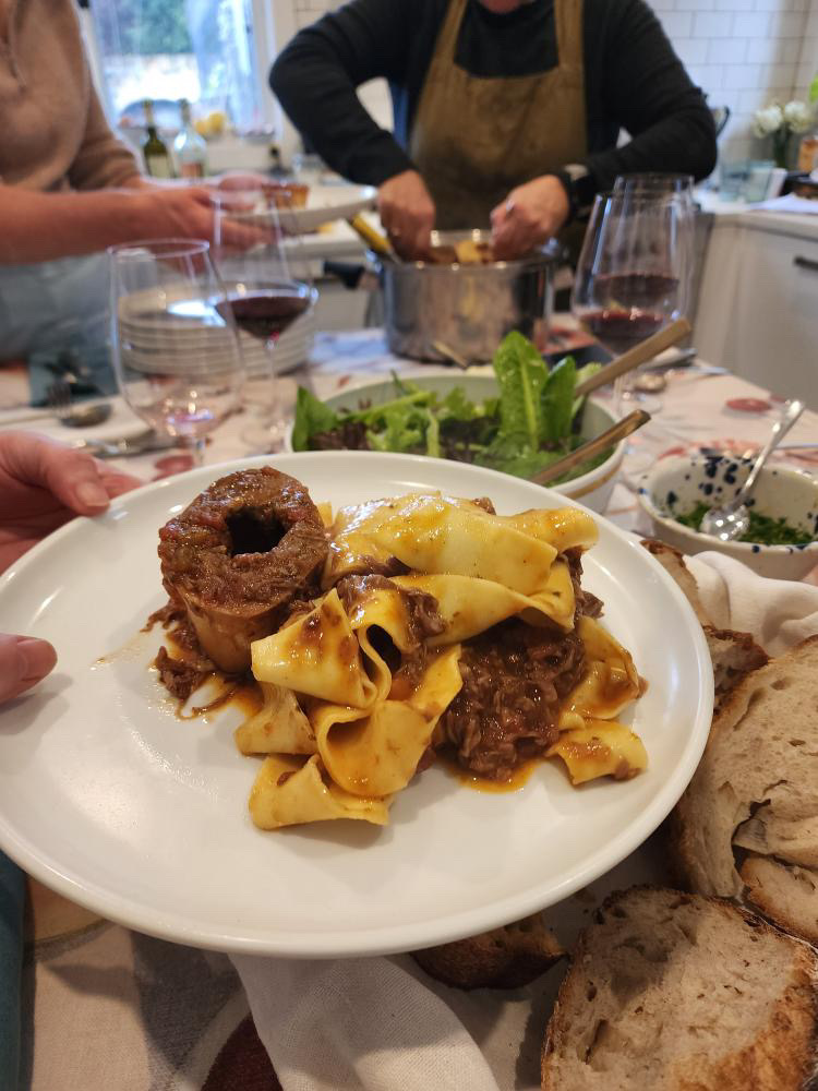 “There is nothing I love more than cooking & baking Italian comfort food during the cold Winter months! Join me for a cosy day where the outdoor fire will be on and we will stay warm in my kitchen studio cooking and baking a hearty 3 course Italian lunch; Zuppa con Fagoli (Soup with Beans) to start, Osso Buco con Pappadella Pasta for our main dish, and to end, Lemon Budino dessert. Three classic Italian dishes to warm our bellies and souls! Together we will prepare these dishes from scratch and then sit down by the fire to enjoy the fruits of our labour!”.