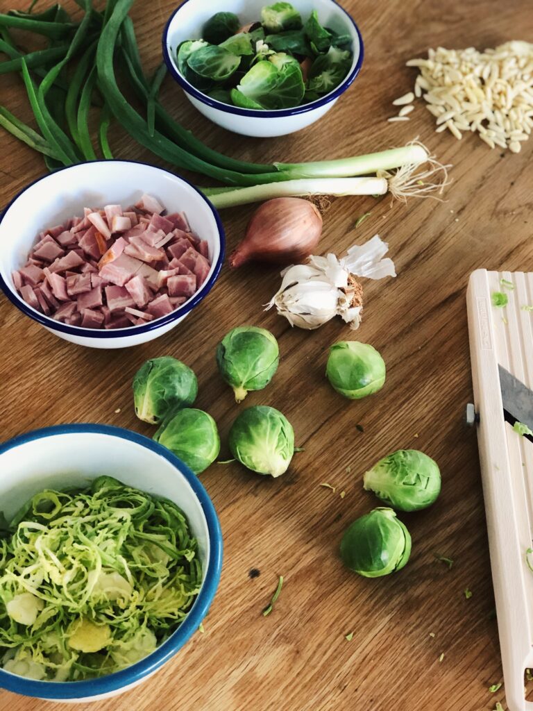 I feel there is a general consensus on Brussels sprouts; you either love them or loathe them! It was the latter for me as a child, however, I don’t think anyone (even brussels sprouts aficionados) would have liked them cooked the way my mum cooked them! Mushy, grey overcooked sprouts!!! It was only once I started to date (and eventually marry) a chef, that Brussels became a firm favourite in our Autumn/Winter menus!